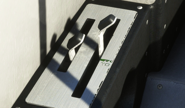 An anti-servo tab assists pitch movement. Pitch trim is connected to the same tab from an electric actuator and can be set with the handle next to throttle.
