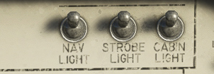 Instead, six fuel prisms on each wing allow to determine fuel level. Each prism has a different length and will let light shine through it as soon as fuel level will drop below its base. Thus, six blank cylinders mean that no fuel remains in the tank.