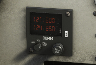 It allows to manage COM 1 frequency (active and standby). Left knob can be used to set volume.