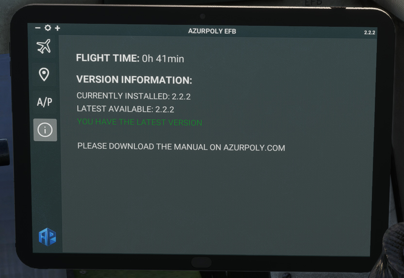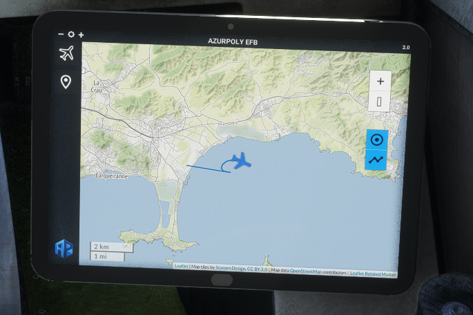 To help managing all actions related to the aircraft, an EFB has been implemented. It can be opened and closed thanks to a cockpit button.