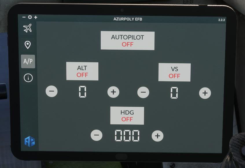 The BD-5 is not equipped with an autopilot, but you will find an autopilot menu in the EFB, allowing you to hold altitude and/or heading as you wish.