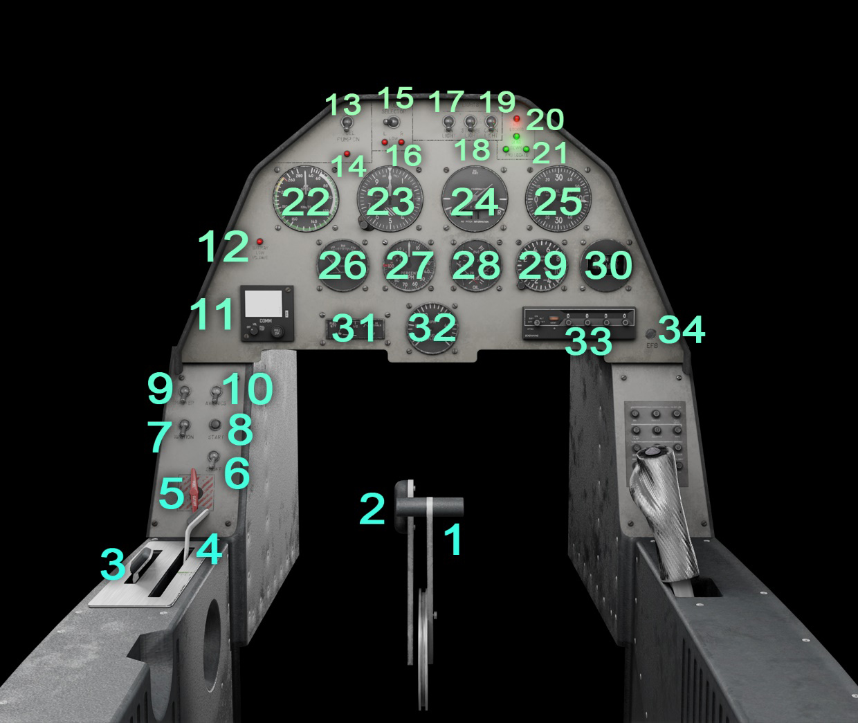 | 17 | Navigation lights switch | 34 | EFB button |