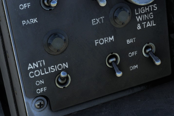 Below front panel, anticollision light, position lights, and formation lights can be managed independently. Two different intensities can be selected (except for anticollision):