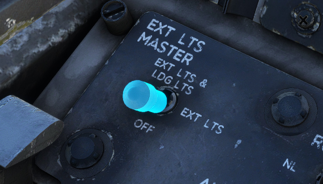 EXT LTS & LDG LTS: same as previous position but taxi/landing lights are turned on.