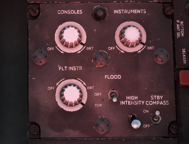 Flight instrument lights (white light for most important gauges).