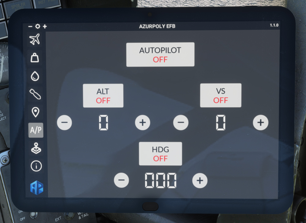 Clicking on top AUTOPILOT button allows to switch autopilot master on.