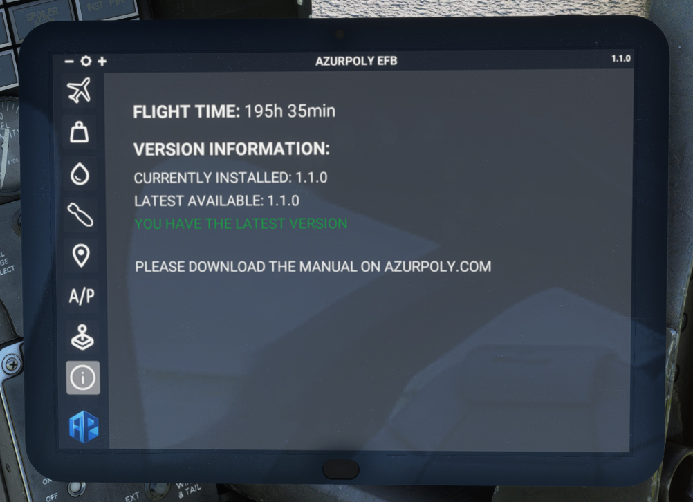 To help managing all actions related to the aircraft, an EFB has been implemented, similarly to all our other aircraft.