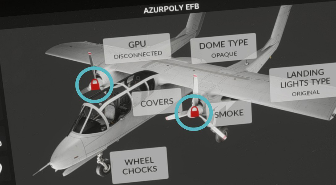 In order to “unlock” start latches, power lever needs to be briefly put in reverse range. At this moment, propeller can operate in their full beta range. You can check on the EFB that padlock logo disappeared.