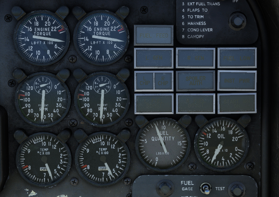 Engine is monitored with several gauges positioned on main instrument panel: