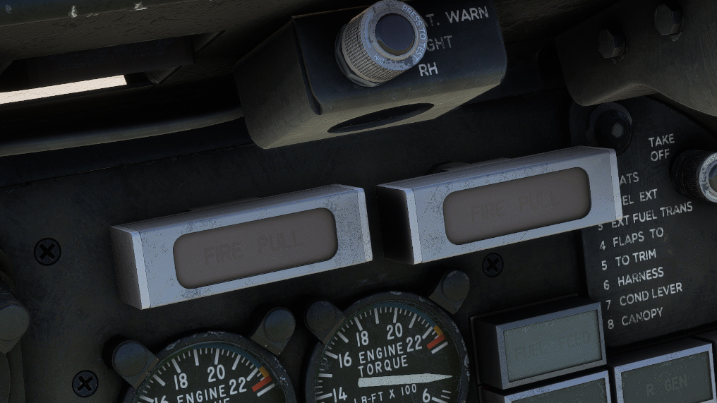 Two handles located on main panel will light in red in case of engine fire.