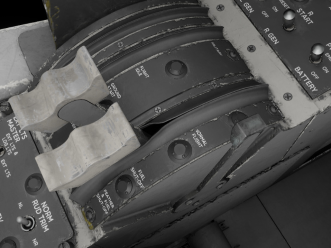 Power levers are using throttle axis by default. Positive throttle zone goes from FLIGHT IDLE to MILITARY positions, and reverse throttle zone goes from GROUND START to FULL REVERSE.