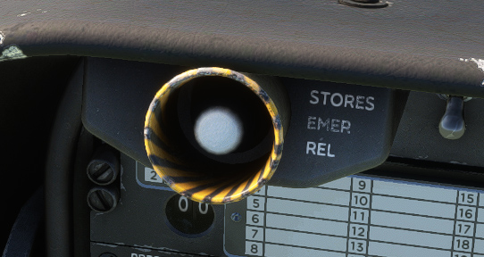 On main panel, emergency stores release button allows to release all stores including the external tank.