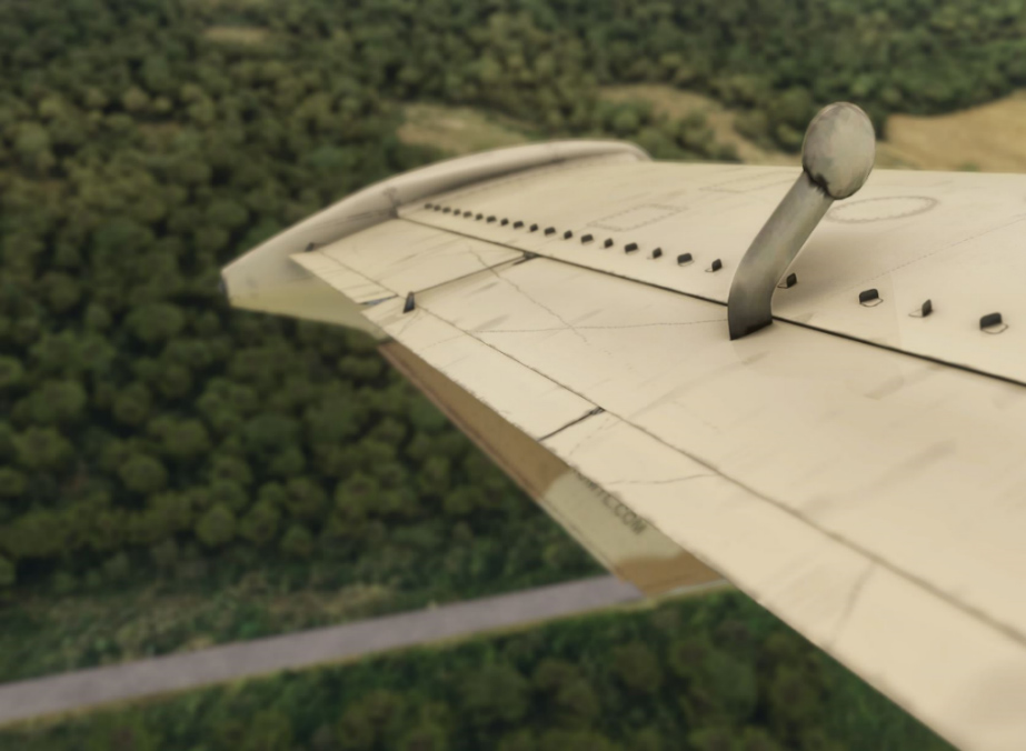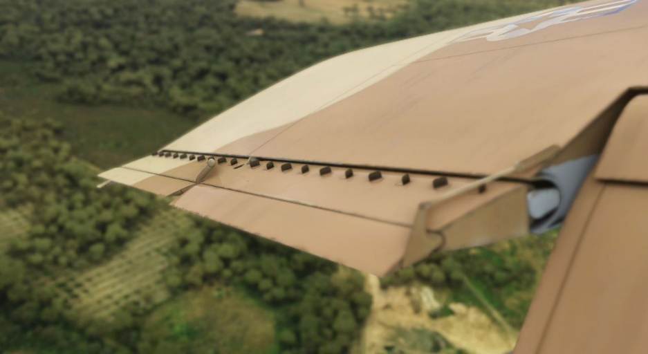 Displacement of the ailerons triggers mechanical linkage to rotate the spoiler plates upward from the down-going wing, generating extra rolling reaction as a result of lift loss. When the control stick reaches its maximum lateral travel, the spoilers are displaced by approximately 86 degrees.