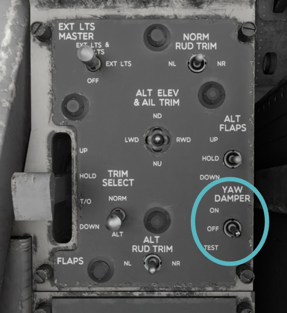 Yaw damper system supplies a control torque to the rudders proportional to aircraft yaw rate and oscillation frequency and in the opposite direction of the yaw motion. Pilot control of the system is obtained through a three-position toggle switch: