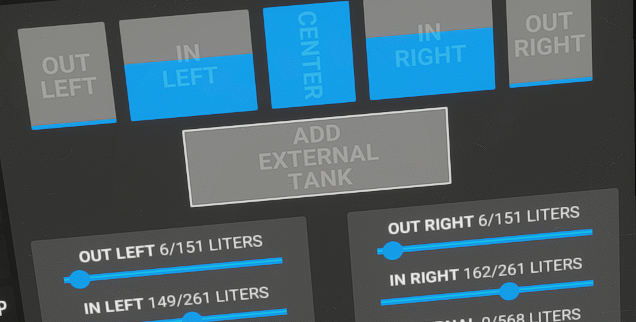 Another 230 gallons external tank exists but is not implemented on our aircraft.