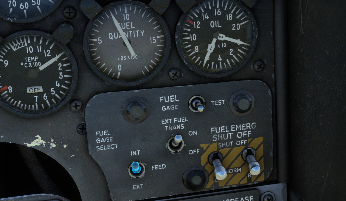 Fuel gauge is positioned on the bottom right of instrument panel and indicates fuel level (in LBS x 100) depending on fuel gage select switch position: