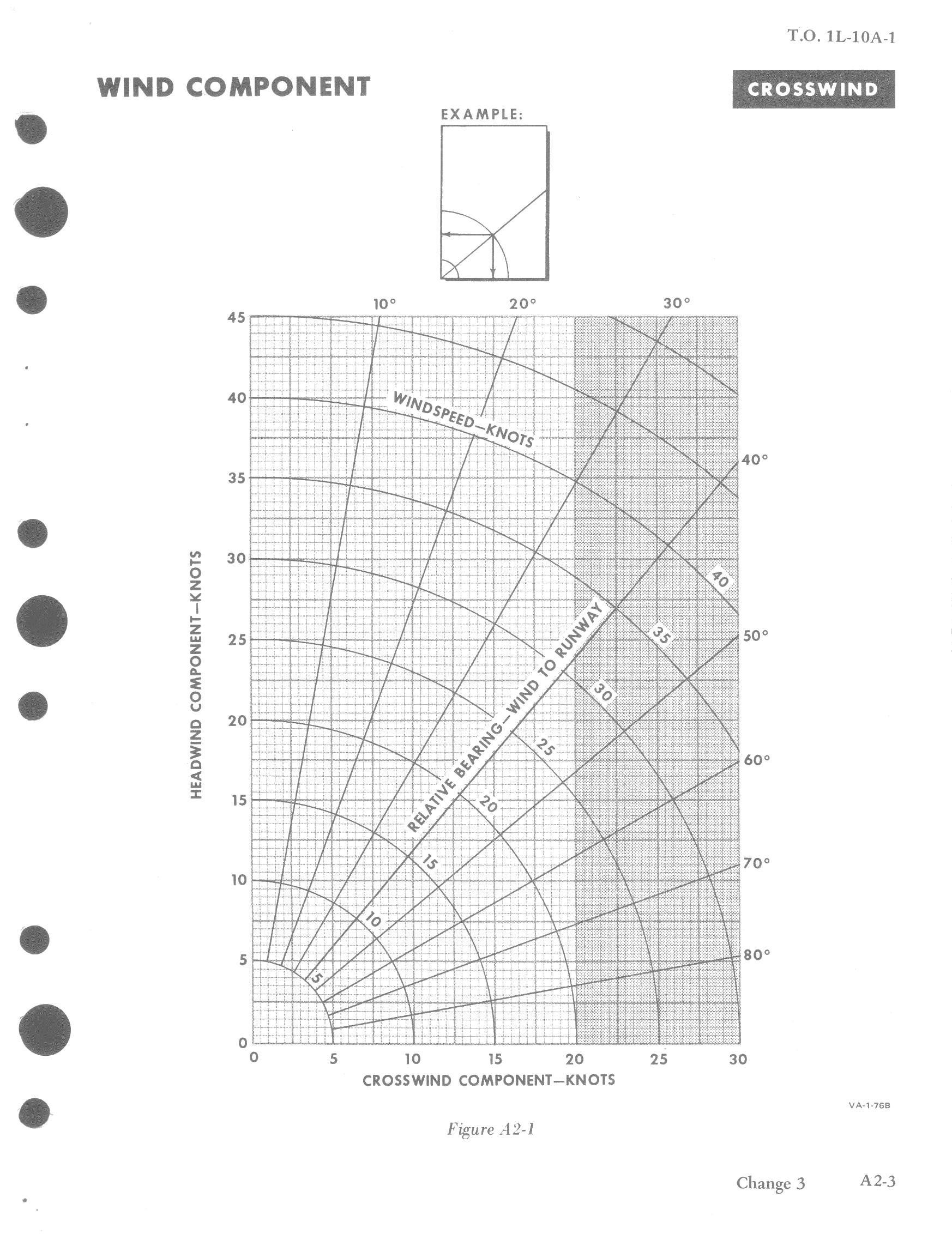 A wind component chart is used to obtain headwind, tailwind, or crosswind components for winds from 0 to 60 knots at angles up to 90 degrees from aircraft heading. Crosswind component limit is 20 knots for take-off and landing.