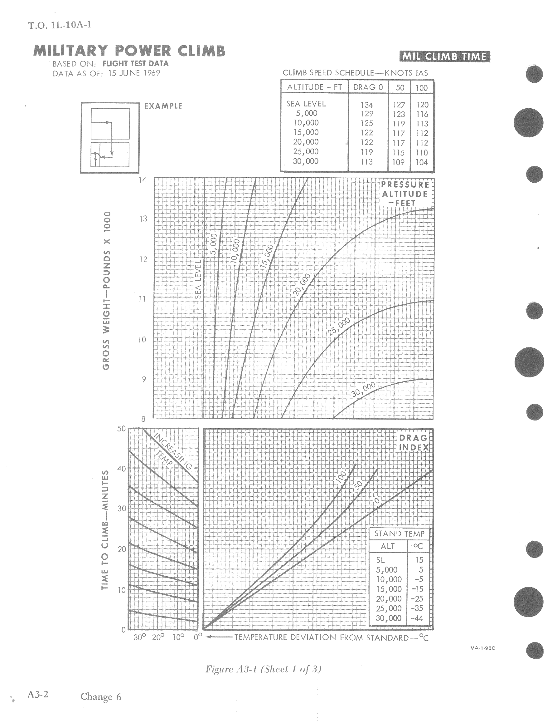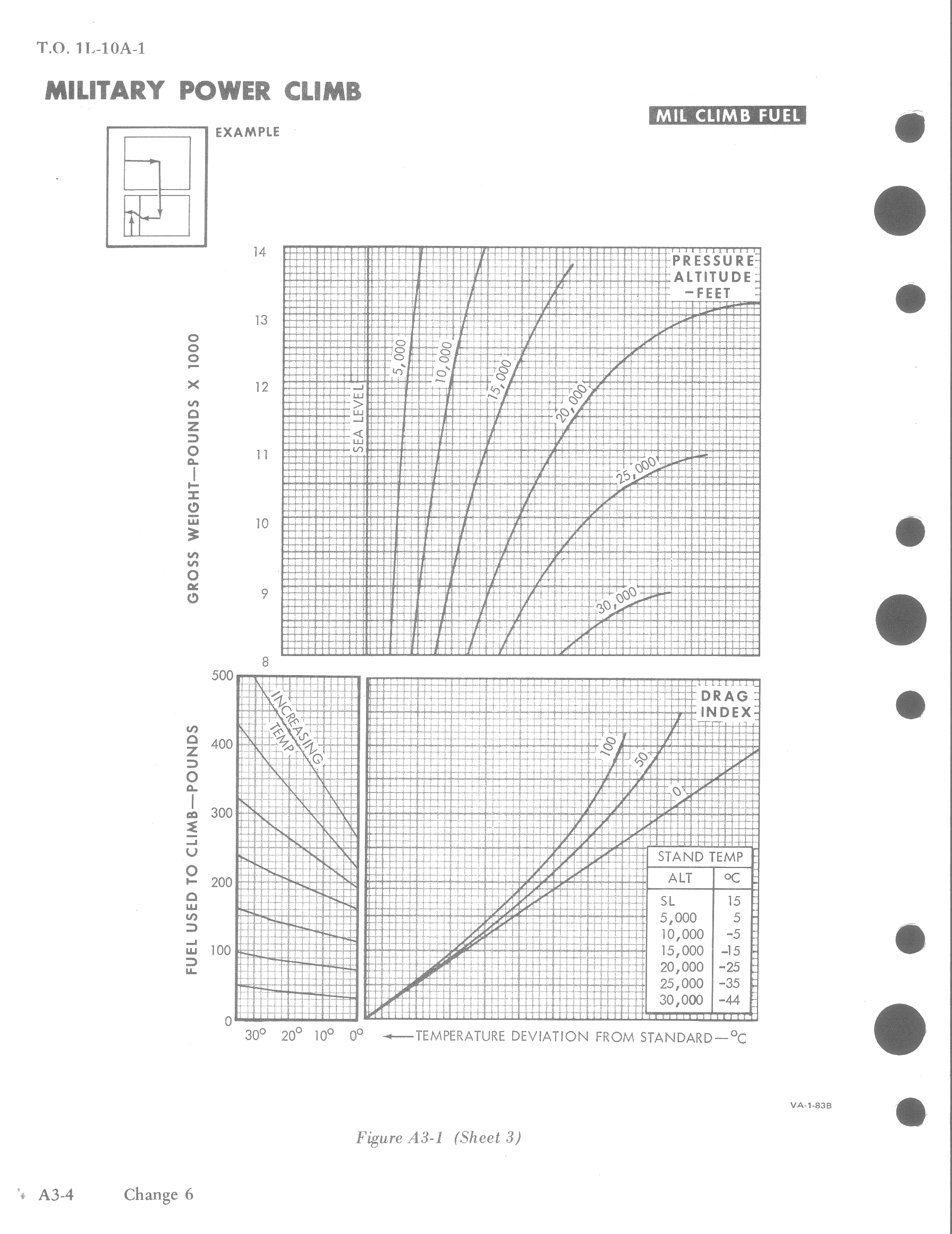 Those three charts show time to climb, distance covered and fuel required at best climb speed with Military power at various gross weights, drag indexes and ambient temperatures.