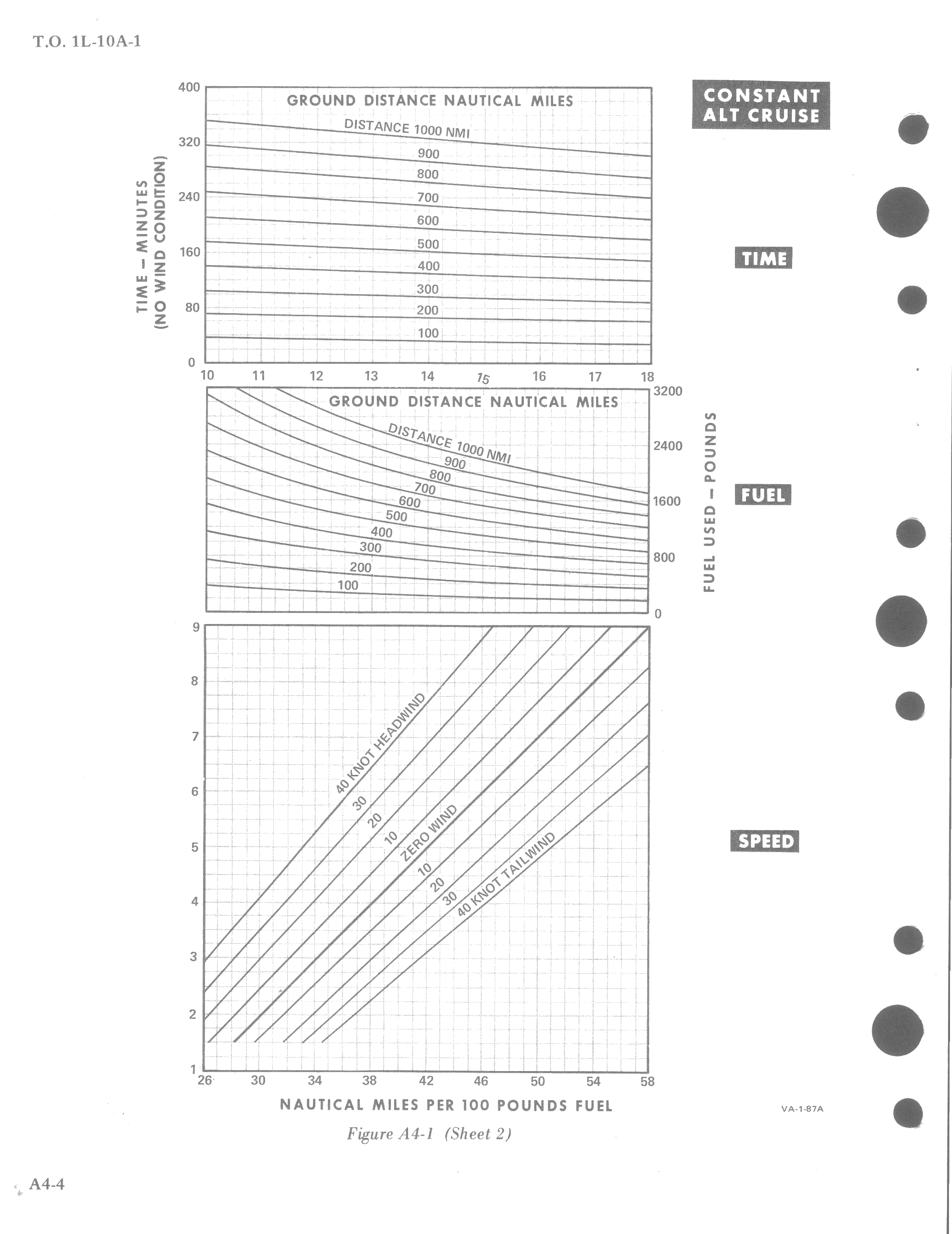 Constant altitude cruise charts are used to determine speeds, fuel and time requirements for navigational flights. An average gross weight may be used for a given leg.
