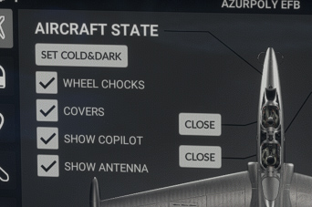 You can also open and close pilot and copilot canopy from here.