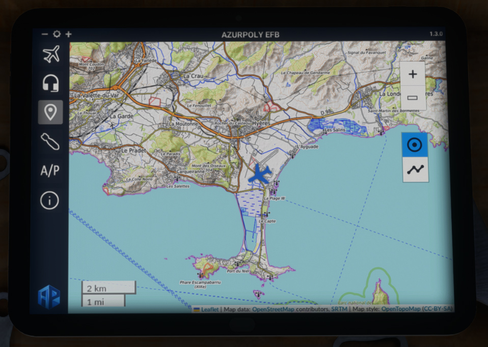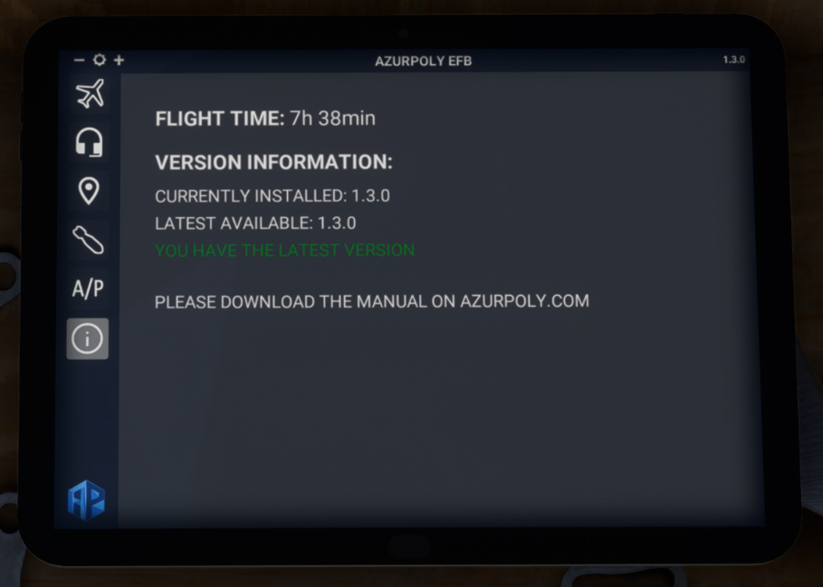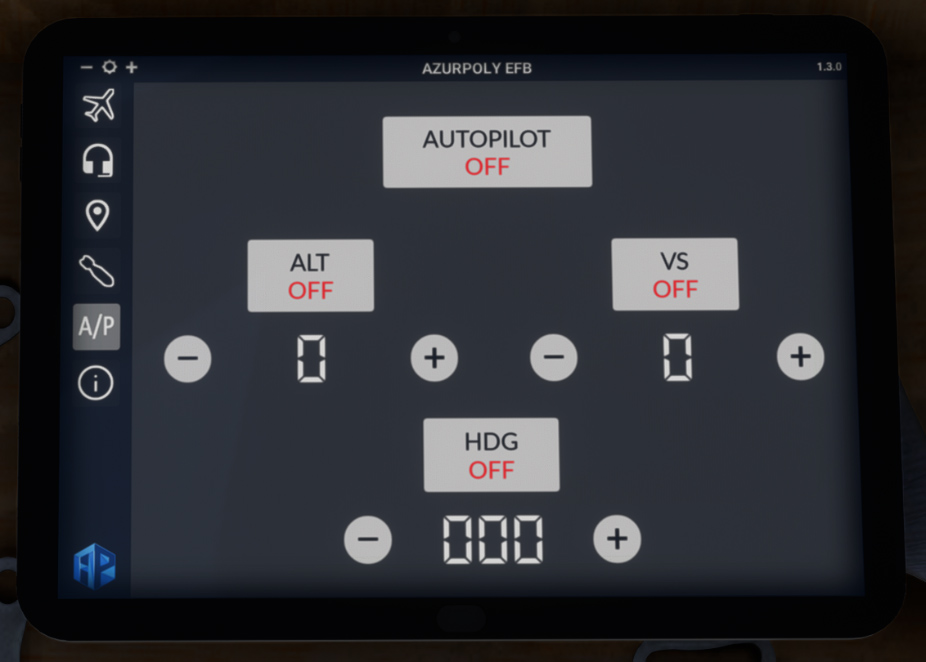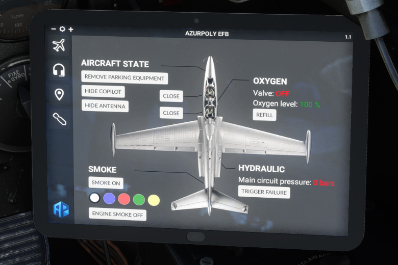 To help managing all actions related to the aircraft, an EFB has been implemented. It can be opened and closed thanks to a cockpit button.