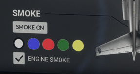 Here, you can turn the smoke system on (which can also be done with the switch on the main panel), and choose between five different colours.