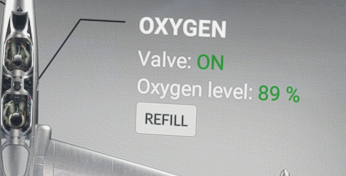 This menu shows oxygen valve state, in addition to the remaining quantity.