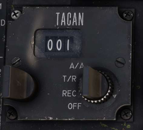 TACAN panel is mounted on the left console, with a window displaying the active channel.