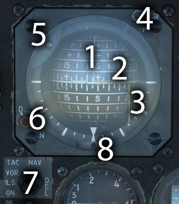 | 3 | Horizontal deviation bar | 7 | VOR-ILS / TACAN selector |