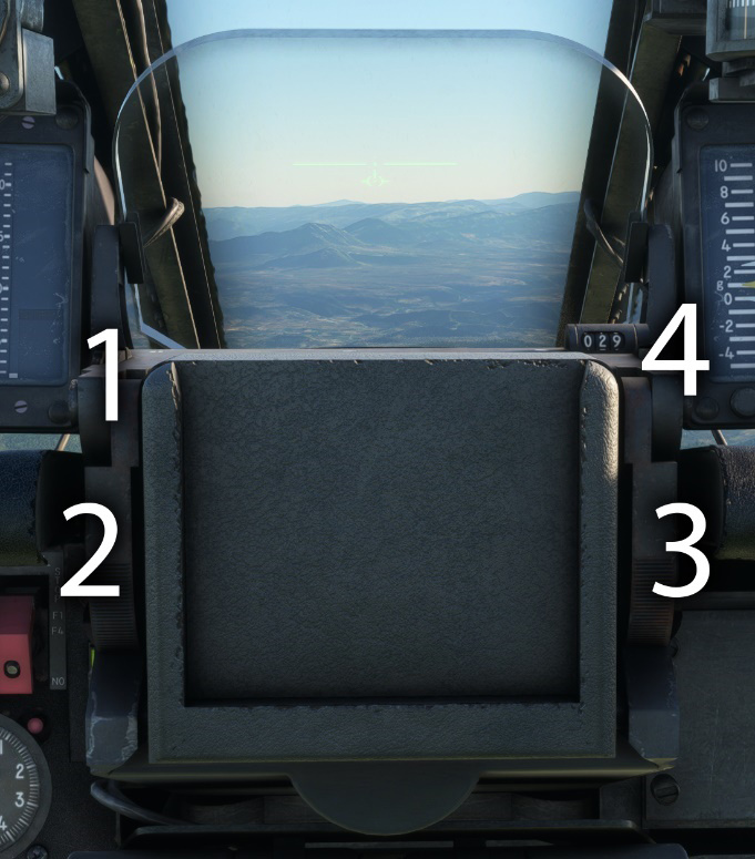 The heads-up display is powered depending on the position of armament safety knob (flight preparation, air-air preparation or armed).