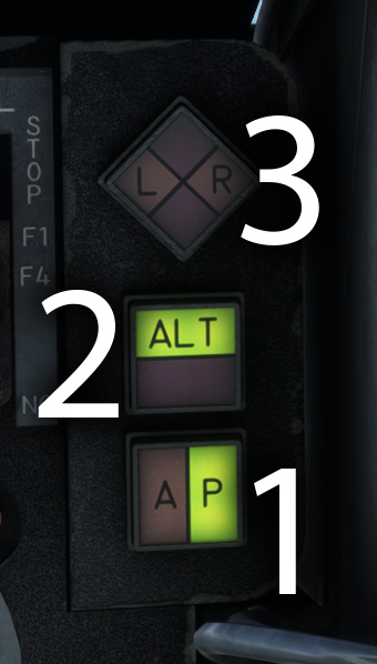 The aircraft is fitted with a very basic autopilot, managed with three buttons located on the left of HUD casing.