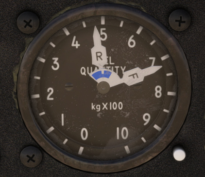 To follow fuel quantity remaining in each tank, a gauge on main panel shows the following information: