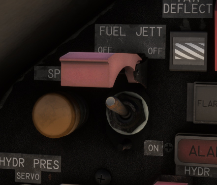 In case of emergency during the flight, they can be jettisoned with all other external stores from a button above left console.