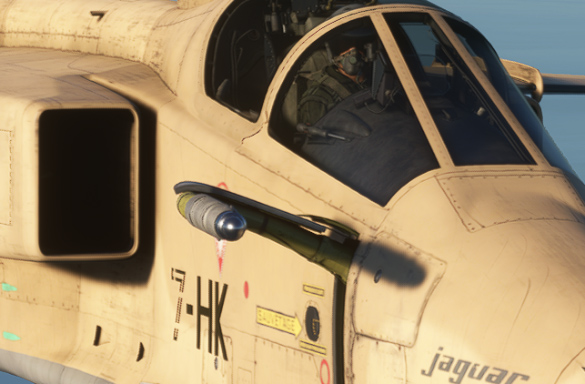 The Jaguar A can be air-to-air refueled via a retractable probe located on the right side of the fuselage, forward of the cockpit.