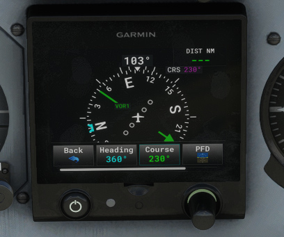 Beside the numerous screens present on the aircraft, you will find a simple VOR/ILS indicator, that you can use as a course deviation indicator with glideslope indicator.