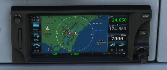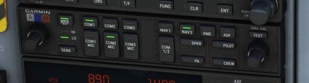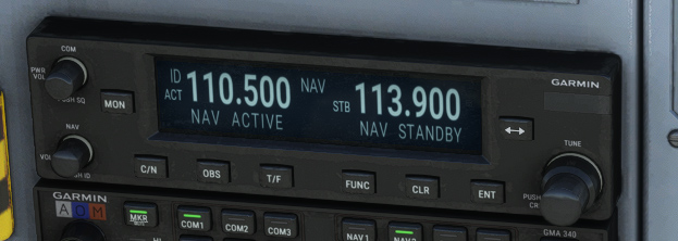 This GNC 255 radio is partially customized as the default one provided in the simulator only manages COM frequencies.