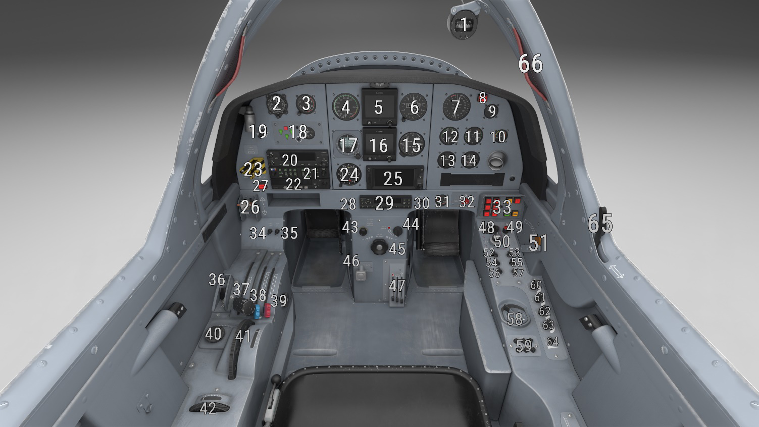 | 32 | Magneto selector | 65 | Canopy locking handle |