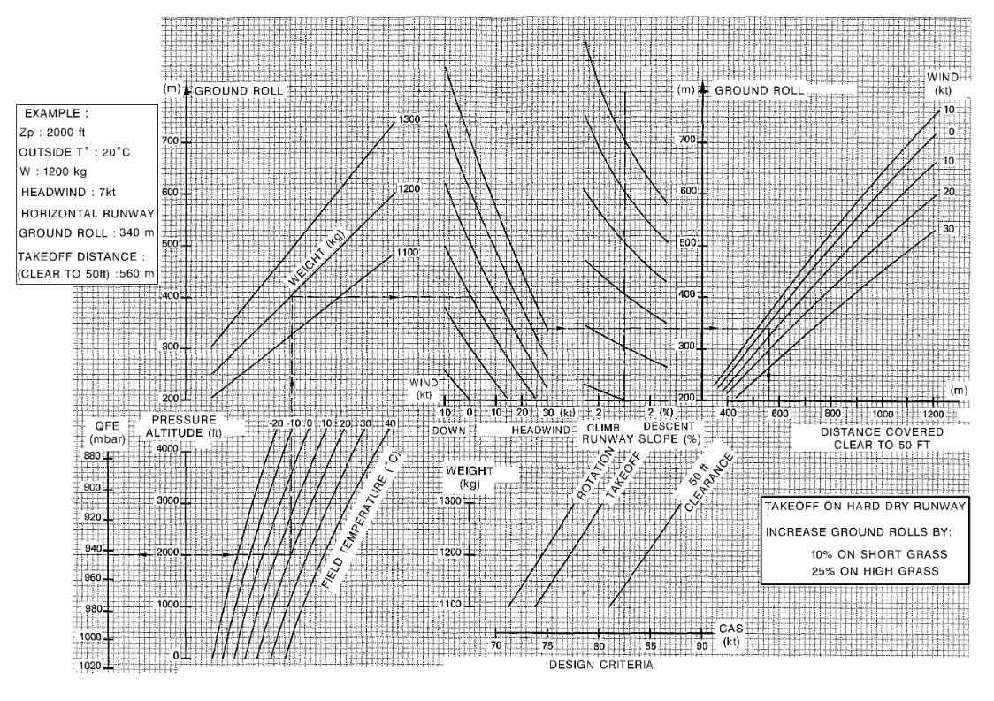 Takeoff is performed full throttle, full low pitch, full rich, in flaps configuration 15°.