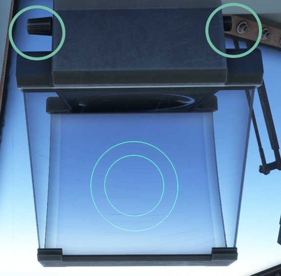 Right button makes the unit entering a test mode where two circles are displayed on the center, allowing to adjust seating position correctly.