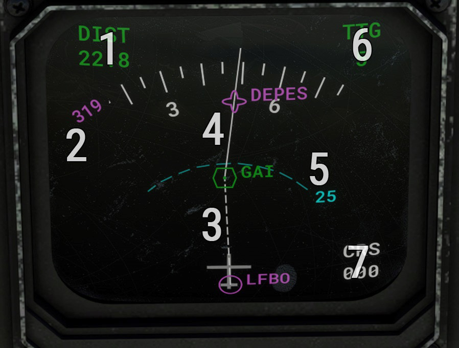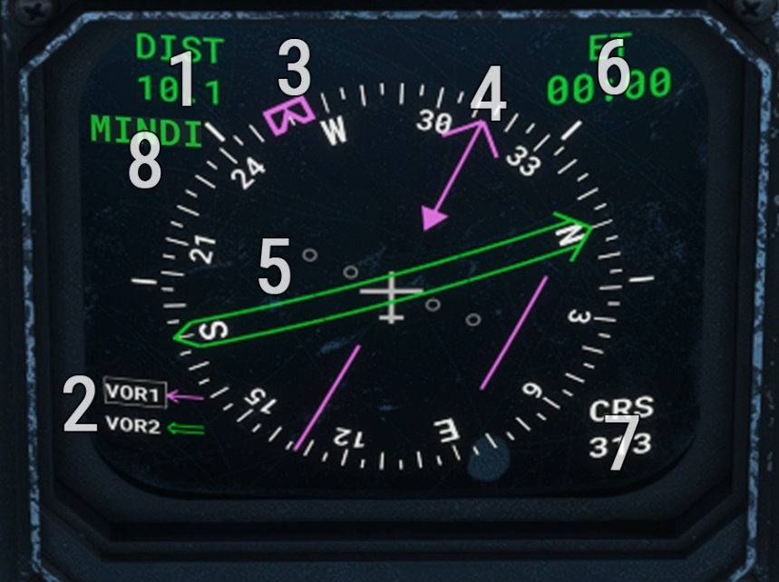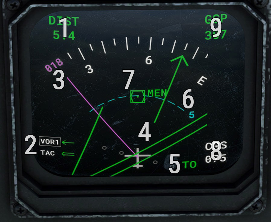 | 2 | Navigation sources and active one | 7 | VOR/ADF/TAC/waypoint position |