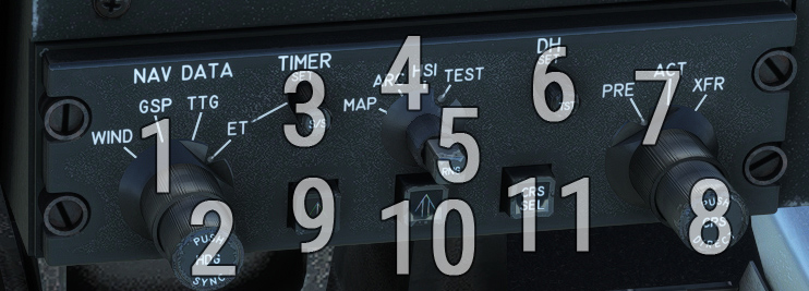 | 5 | EHSI range selection knob | 11 | Toggle active navigation source |