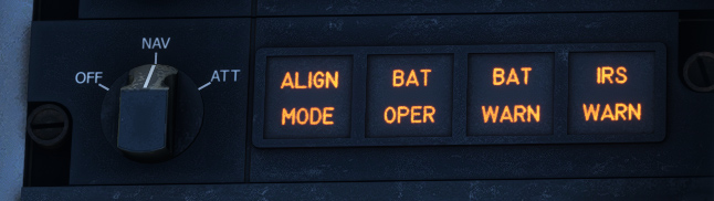 IRS is functioning when the knob is on “NAV” position, after which an initialization sequence of approximately 30 seconds will take place. A parallel GPS system allows to determine initial position, and IRS is able to know aircraft position at any time from that point.