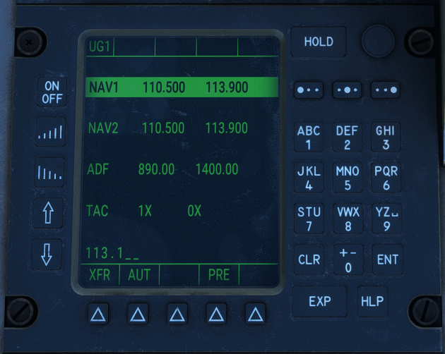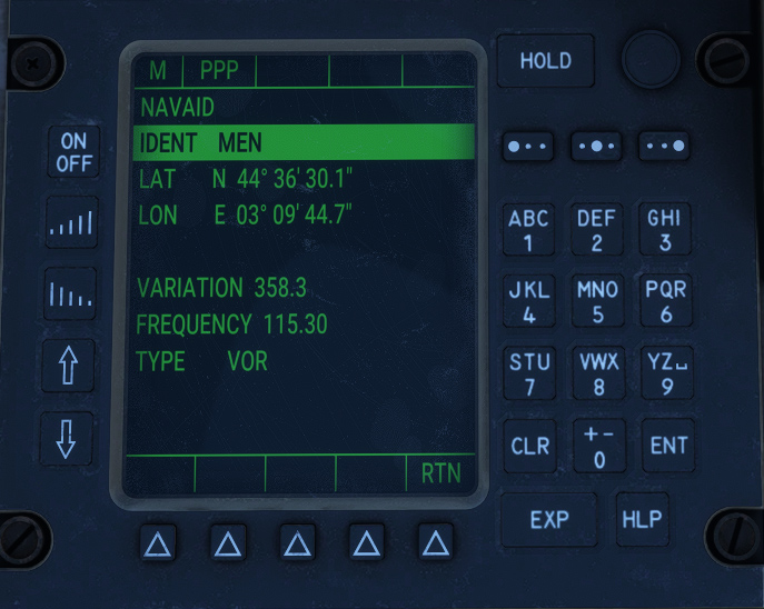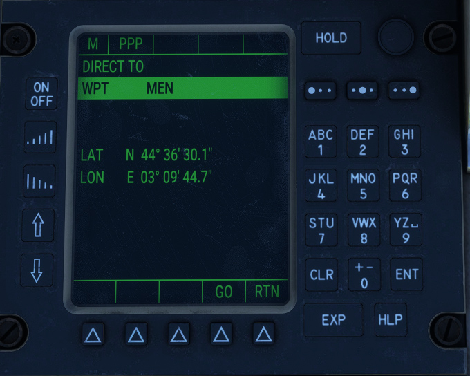 Radionavigation route interception and hold (RADIO), connected to NAV1, NAV2, TACAN and GPS.