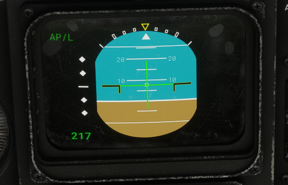 “AP/L” inscription indicates that autopilot is managed by the pilot (only option available for now), and becomes green once autopilot master is on. “LOW” inscription is displayed below 160 knots to indicate a different operating mode where gains on commands amplifiers are reduced (on the three axis).