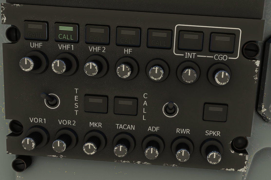 Knobs allow to set volume for each audio input: COM, VOR, marker, TACAN, ADF, etc.