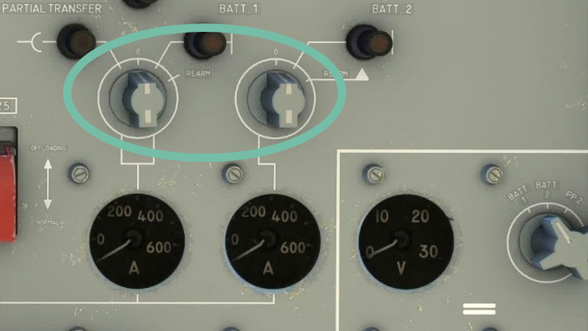 Two batteries provide electrical power while engines are stopped. They have a limited capacity of 40Ah each and can power basic elements such as APU starter, ventilation, interior lighting, etc.