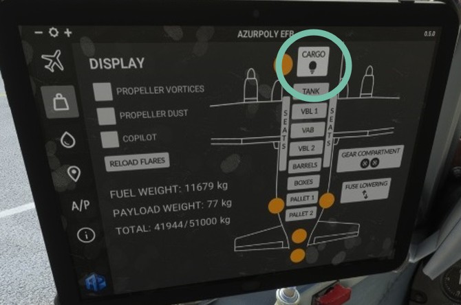 Cargo bay can be illuminated as well from the tablet (EFB).