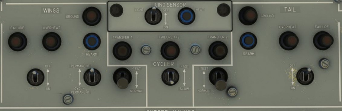 Heating circuits are protected and monitored. For both wings and tail de-icing, red lights indicate: