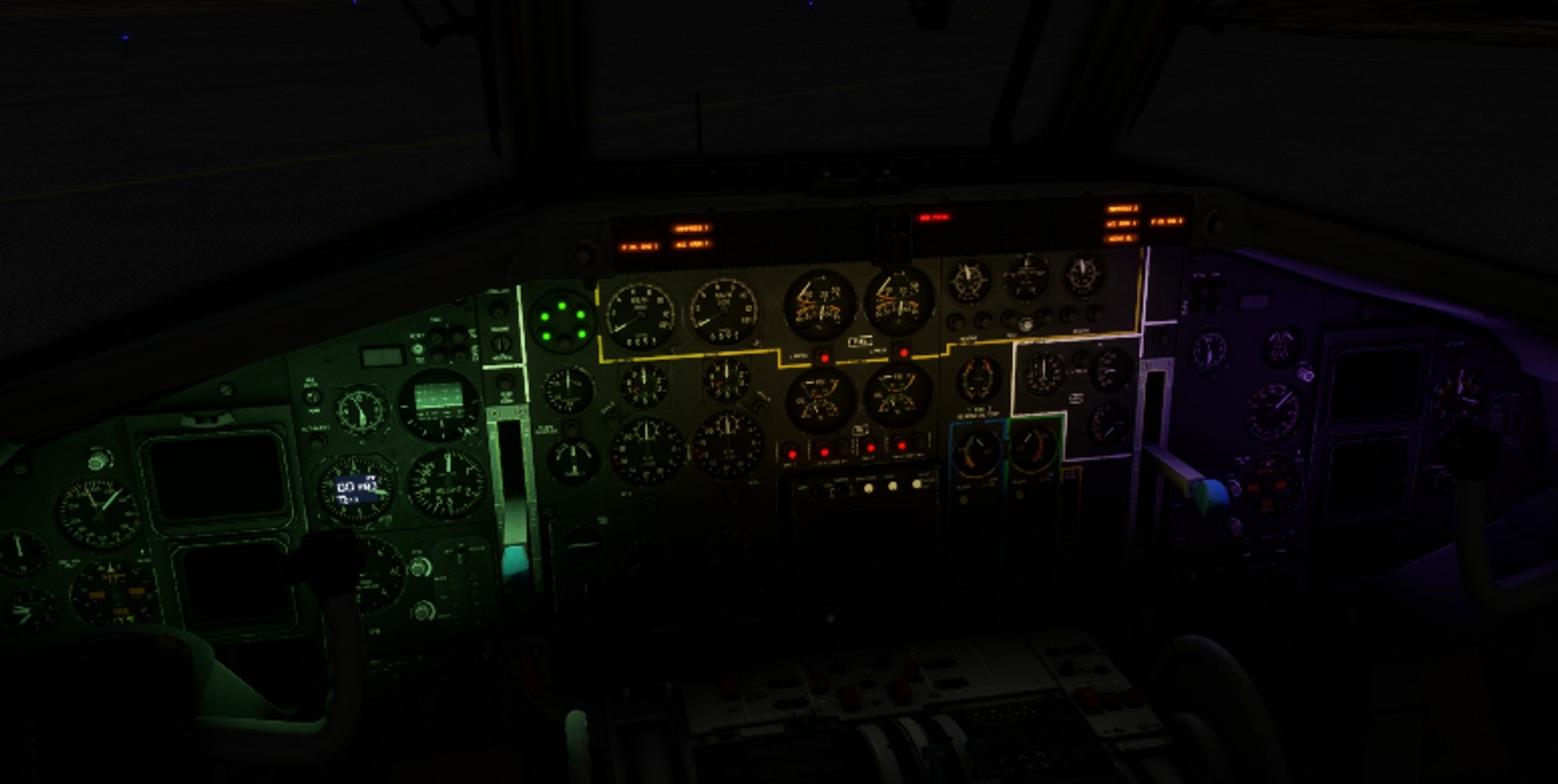 All alarms are gathered in a long panel shared between pilot and copilot, on top of front panel.