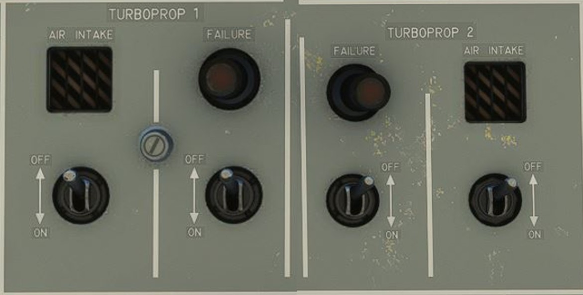 | FIRE ENG 2 | DIFF ALT | TAIL DE-ICE | BATTERIES | SERVO BL | VENTILATION |